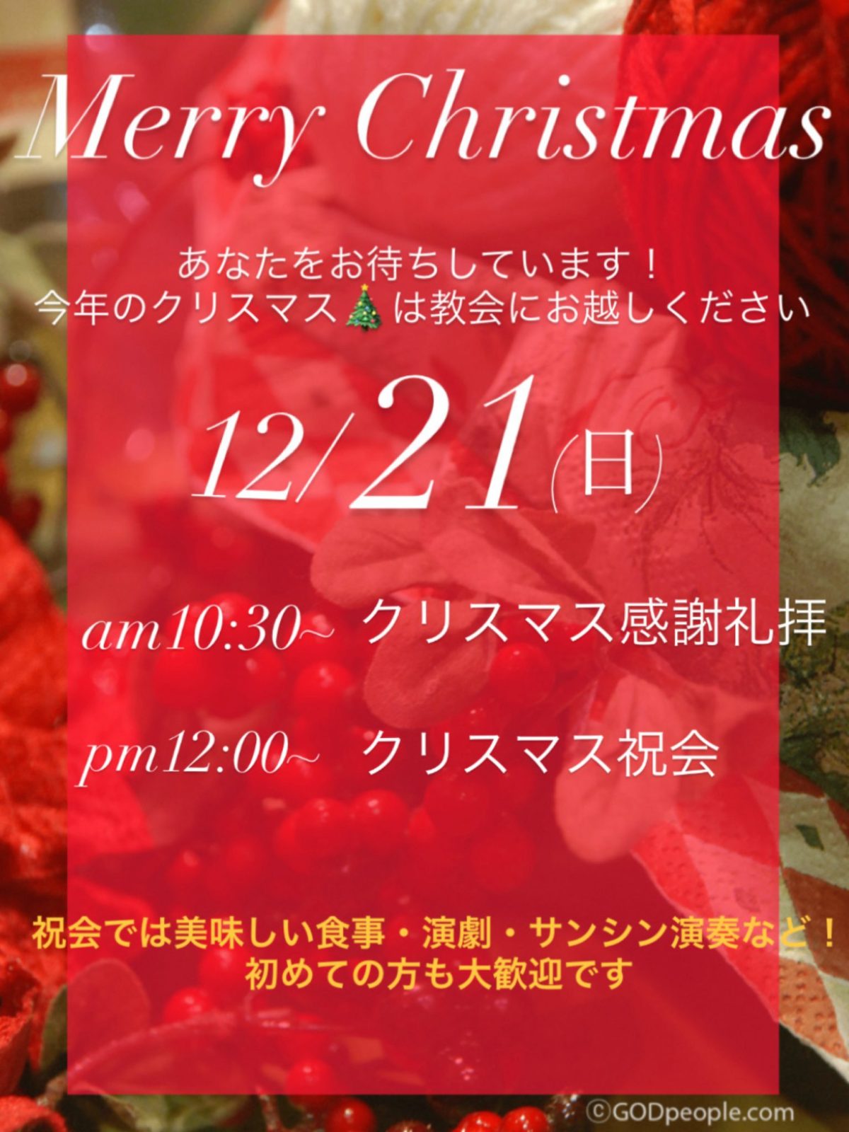 2025/12/21クリスマス感謝礼拝&祝会✨🎄✨ 2025 11/15 お知らせ Merry Christmas✨🎄✨クリスマスに神様の大きな愛を受け止めて恵みをいっぱいに受け取ってください!初めての方も大歓迎です。お友達を誘い一緒にいらして見てください🤗❣️下の写真は2024年のクリスマス祝会の様子です。 お知らせ 2026/1/6~19 日韓交流イベント🇰🇷韓国の大学生8人が来ます❣️ 関連記事 2026/1/6~19 日韓交流イベント🇰🇷韓国の大学生8人が来ます❣️ 2025年11月12日 ‼️ 2025/07/24 韓国語教室 :🔰完全初心者クラス開始! 2025年7月24日 【終了】2025/06/28 3回目『音響セミナー』サウンドチェック!セミナー風景❣️ 2025年7月5日 【終了】2025/02/15 韓国音楽会(第二回)♪♪ 2025年1月23日 【終了】2024/12/9 中高生☆集まり(第3回) 2024年11月24日 【終了】2024/07/02~ 떡볶이파티&한국어교실 🫰🏻🤗with CCC 2024年6月10日